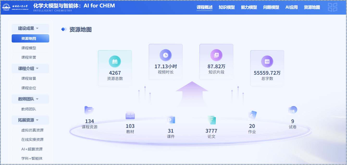 课程通过数字化知识库和AI智能有机融合,将多模态教学内容和教学过程数据进行整合与管理,为师生提供智能化、跨时空、可量化、个性化的教学服务。